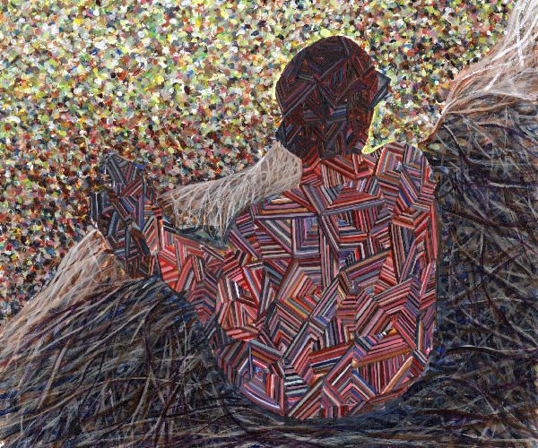 Acrylic, gesso and limestone on canvas, 100x150cm